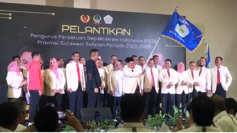 INDONESIANUPDATE.ID | Pengurus Provinsi Persatuan Sepak Takraw Indonesia Sulawesi Selatan (Pegprov PSTI Sulsel) periode 2022-2026 yang diketuai H Surianto resmi dilantik dan dikukuhkan oleh Sekjen Pengurus Besar PSTI, Herman di Hotel Aryaduta, Sabtu malam (11/2/2027)